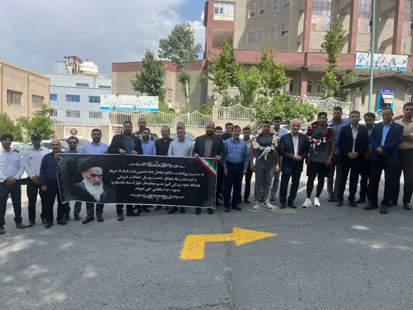 صبح روز چهارشنبه 16خرداد ماه ، دو نفر از کارکنان دانشگاه مسافت بین مرکز آموزشی درمان کوثر تا ستاد دانشگاه علوم پزشکی البرز در حدود 15 کیلومتر را به مناسبت سالگرد بزرگداشت حضرت امام خمینی(ره) دویدند. ���� حسن چاردلی از پرسنل بیمارستان شریعتی و قهرمان چند دوره مسابقات ووشو و اسماعیل قادری از پرسنل مجتمع آموزشی درمانی امام علی(ع) و قهرمان مسابقات دو و میدانی آسیا هستند که با هدف تجدید میثاق با آرمان های امام راحل مسافت بین بیمارستان کوثر واقع در میدان حصارک – بلوار خوارزمی – نرسیده به شهرک یاس تا ستاد مرکزی دانشگاه علوم پزشکی البرز واقع در میدان طالقانی شمالی را دویدند. در پایان طی مراسمی به همت مدیریت حراست دانشگاه و با حضور رئیس دانشگاه و جمعی از کاکنان در محوطه ستاد دانشگاه برگزار و از این دو ورزشکار دونده تجلیل شد.